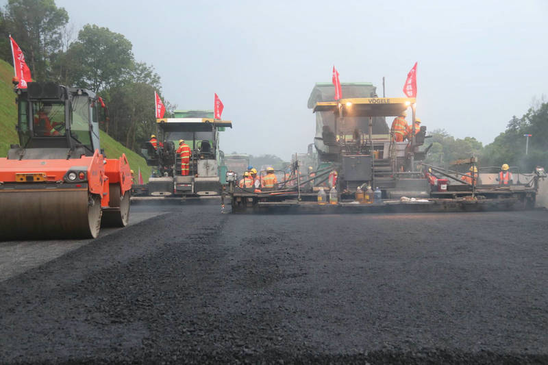 齊心協(xié)力共奮進(jìn),搶工大干正當(dāng)時,該項(xiàng)目部“路面熱”成為一道靚麗的風(fēng)景線,揮汗如雨的建設(shè)者們,他們用汗水詮釋著“勞動最光榮”,依然堅(jiān)守一線,確保攤鋪工作穩(wěn)步推進(jìn)。并且對瀝青路面原材料、施工拌和、攤鋪、碾壓等各環(huán)節(jié)質(zhì)量控制要點(diǎn)及主要做法全面“充電”的同時,全員“搶晴天,干雨天”,加班加點(diǎn)推動路面結(jié)構(gòu)層施工,為導(dǎo)改提供有利條件。