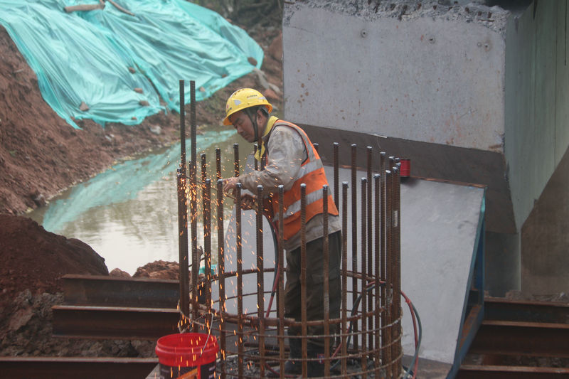 北新路橋集團(tuán)長沙分公司滬昆B1標(biāo)項(xiàng)目建筑工人正在焊接