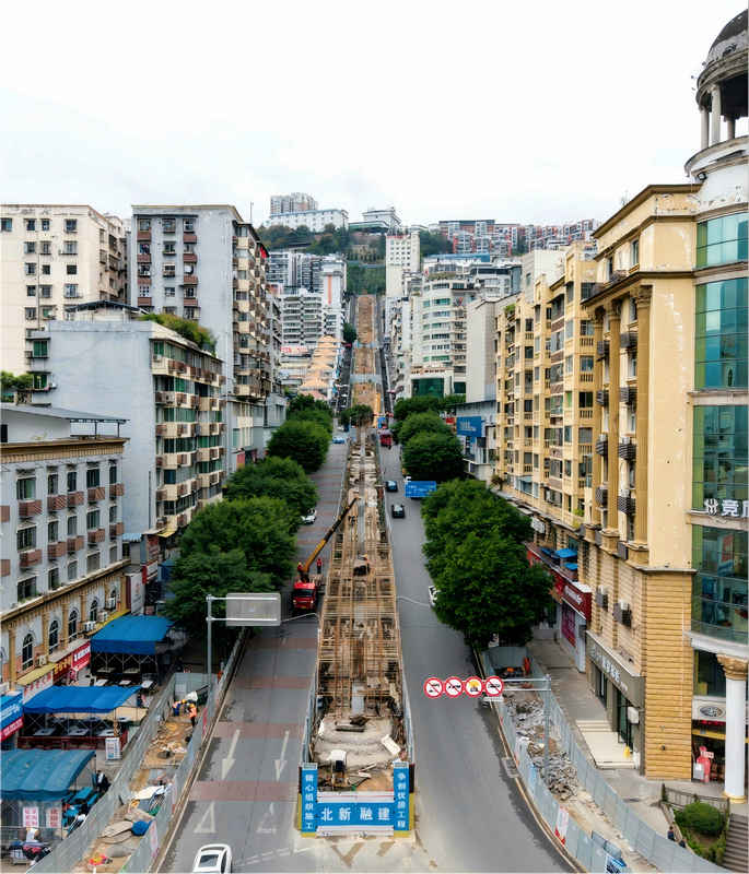 “本次澆筑的樁基位于巫山縣尚熙臺處,此處巫山縣交通樞紐地帶,車流、人流加上施工難度,給現(xiàn)場作業(yè)帶來了很大困擾。”該項目副主任工程師瞿政紅介紹道,為確保將施工影響降至最低,項目部采用占道施工時間最短的旋挖鉆成孔方式施工,從圍擋搭設(shè)、路面保護措施施工、旋挖機進場、樁基鉆進、樁基成孔、鋼筋籠安裝、樁基混凝土澆筑等,晝夜施工不停歇,僅用1天時間完成所有工序。