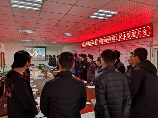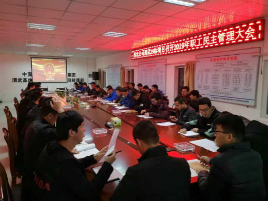 3月6日晚,隨著莊嚴(yán)的國(guó)歌聲響起,中國(guó)鐵建大橋局西北公司渭武19標(biāo)項(xiàng)目2019年職工民主管理大會(huì)正式拉開(kāi)序幕,項(xiàng)目領(lǐng)導(dǎo)班子、部門(mén)負(fù)責(zé)人、正式職工及特約受邀優(yōu)秀臨時(shí)工代表共39人參加會(huì)議。