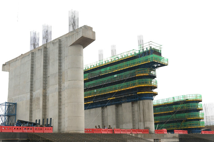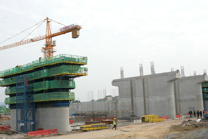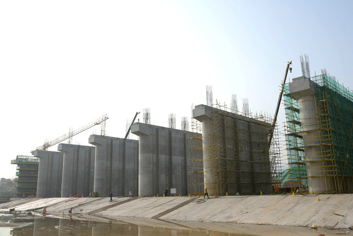 招賢樞紐建成的8個(gè)泄洪閘墩 王繼劍攝