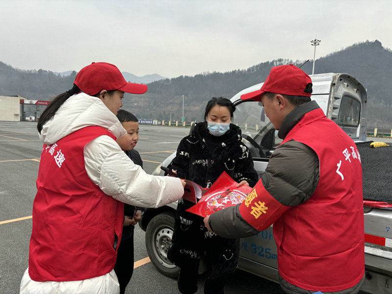 來到設(shè)置在服務(wù)區(qū)樓前的便民服務(wù)點(diǎn),“暖冬行動、情滿旅途”橫幅高高懸掛,桌上擺放熱飲、小地產(chǎn)等和由春聯(lián)、窗花、福字等組成的新年大禮包,志愿者笑臉相迎、熱情服務(wù)。“天氣冷,請喝杯熱茶暖暖身子”,廣平高速運(yùn)營中心的志愿者在遞上熱茶的同時(shí)也在傳遞社會的溫暖。“高速行駛要注意安全,祝您旅途順利”,來自高速公安的志愿者發(fā)出溫馨提示。“送您一份‘大禮包’,提前祝您和家人新年快樂”,高速執(zhí)法志愿者誠摯的祝福讓旅客消除了長途的疲憊。