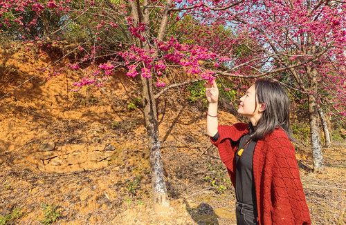 走過天橋,是一片艷麗奪目的梅林,桃紅色的梅花密密麻麻地綴滿枝頭,紅的耀眼,映紅了女職工們的臉頰,真可謂是一處百看不厭的“世外桃源”,風(fēng)景這邊獨(dú)好!女職工們又是一輪拍照,手機(jī)、相機(jī)快門“咔嚓咔嚓”響個(gè)沒完,將人與自然交融的美圖定格在一瞬間,分享給遠(yuǎn)方的親人、同學(xué)和朋友。據(jù)了解,每個(gè)女職工拍攝的圖片都有幾十張,最多的有100多張,他們恨不得將自己與每一處風(fēng)景都拍下來,留下美好的回憶。
