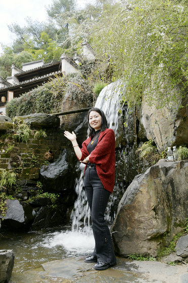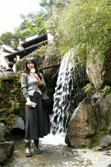 女職工們沿街閱覽飽經(jīng)風(fēng)雨的一棟棟房屋,驚嘆古村落的神奇和不菲的經(jīng)濟(jì)價(jià)值和藝術(shù)價(jià)值,難怪篁嶺古村被稱為中國(guó)最美鄉(xiāng)村之一。這個(gè)村莊一個(gè)叫“花溪水街”的景點(diǎn),從最高處的巖石下噴涌而出的一股山泉流淌至千米開外的谷底,匯成一條湍急的小河。人工合成的5處臺(tái)階式瀑布景觀和一個(gè)在流水的沖擊下不停地旋轉(zhuǎn)的水車,吸引了女職工們的目光,她們站在瀑布、水車前拍照留念,或小歇一會(huì),迷人的景色讓他們流連忘返。