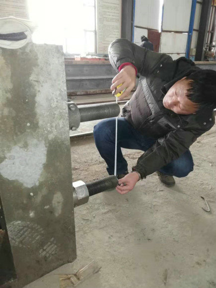 質(zhì)檢人員認(rèn)真檢測(cè)張拉桿中心距