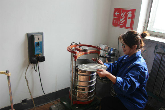 試驗(yàn)人員進(jìn)行砂石檢測(cè)試驗(yàn)