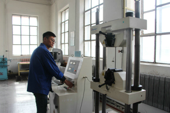 試驗(yàn)人員對(duì)鋼筋質(zhì)量進(jìn)行檢測(cè)