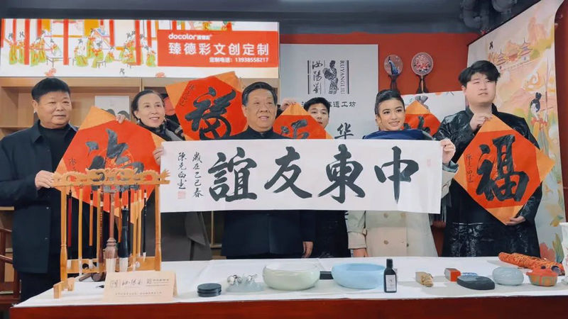 在中鐵·泰和里唐宋夢(mèng)華主題街區(qū),珍娜公主沉浸式體驗(yàn)了中華文化的博大精深。實(shí)景演出《入夜禮》莊重典雅的盛世迎客舞令她贊嘆不已。隨后,珍娜公主參觀了老字號(hào)非遺項(xiàng)目--汝陽(yáng)劉毛筆博物館,與館長(zhǎng)共同揮毫潑墨,共同書(shū)寫(xiě)“中柬友誼”。