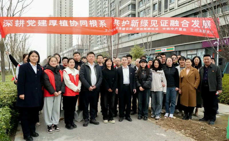 3月12日,中鐵中產(chǎn)置業(yè)公司西安黨支部聯(lián)合西咸新區(qū)灃西新城開發(fā)建設(shè)部、龍臺觀路社區(qū)和工行灃西支行黨支部共計(jì)40余名黨員,在龍臺觀路社區(qū)開展了“深耕黨建厚植協(xié)同根系,共護(hù)新綠見證融合發(fā)展”企地共建植樹活動。