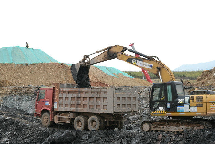 挖掘機(jī)在倒運(yùn)石塊 呂畫(huà)眉攝