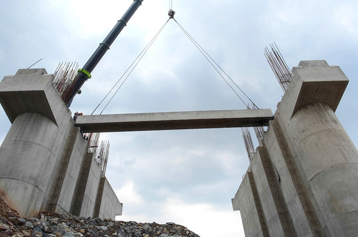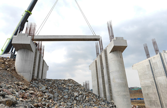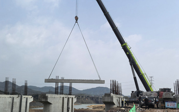 鐵路工程建設(shè)網(wǎng)訊 3月16日上午10點55分,一臺60噸大吊車將一片23噸的空心板梁從大貨車上吊起,穩(wěn)穩(wěn)地安放在中鐵十五局常山江航電招賢樞紐泄洪閘4—5號閘墩上,隨之常山江項目拉開了架梁施工序幕。
