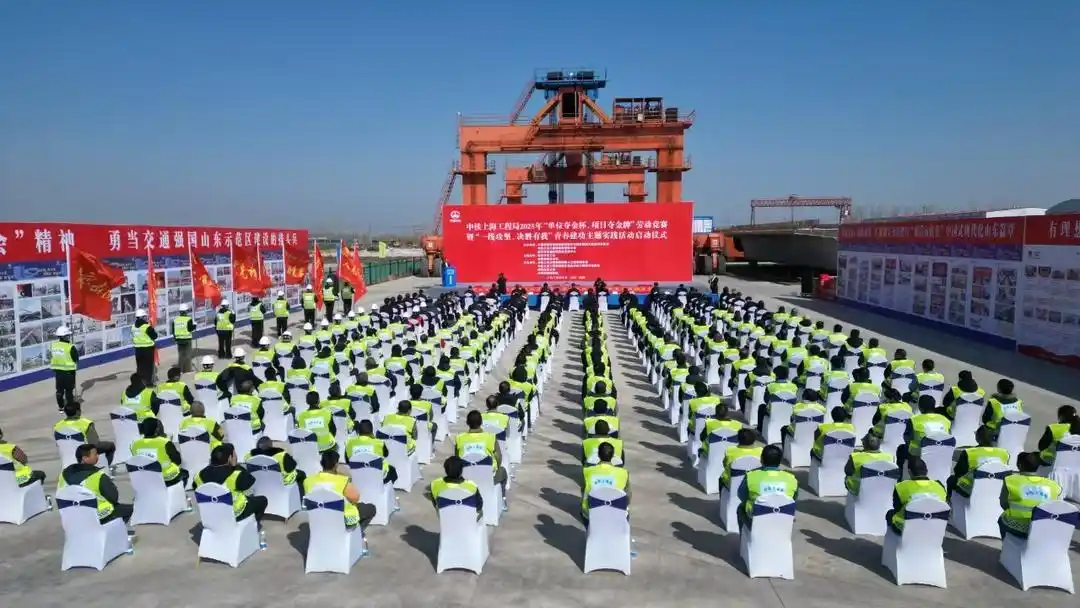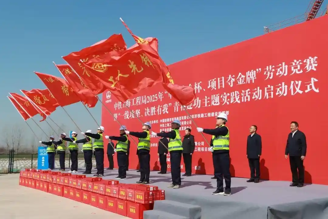 3月19日,中鐵上海工程局2025年“單位奪金杯、項目奪金牌”勞動競賽暨“一線攻堅、決勝有我”青春建功主題實踐活動啟動儀式,在濰坊至宿遷高鐵十標郯城制梁場施工現(xiàn)場成功舉辦。