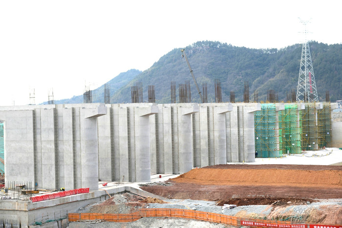 架完梁的頂部將建一座座安裝啟閉機(jī)的小房子 劉利攝