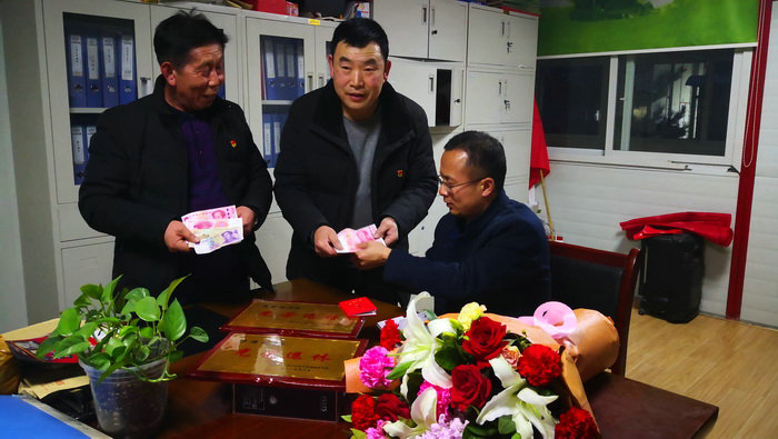 項(xiàng)目部員工與退休老同志合影兩位老黨員在辦理退場(chǎng)手續(xù)時(shí),不忘履行黨員光榮義務(wù),主動(dòng)繳納黨費(fèi),起到了一名共產(chǎn)黨員的模范帶頭作用。
