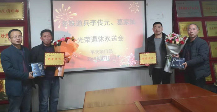項(xiàng)目部為老職工舉行退休歡送座談會(huì) 李傳元退休前為平天高速關(guān)山特長(zhǎng)隧道進(jìn)口架子隊(duì)隊(duì)長(zhǎng),該隧道地質(zhì)構(gòu)造復(fù)雜、圍巖軟弱破碎、進(jìn)口端淺埋段下穿304省道、為全線的控制性工程,自2016年4月項(xiàng)目上場(chǎng)以來(lái),李隊(duì)長(zhǎng)帶領(lǐng)隧道進(jìn)口的兄弟們不畏艱險(xiǎn),沖鋒在前,歷時(shí)30個(gè)月于2018年12月18日,確保了關(guān)山隧道進(jìn)口雙洞與斜井安全順利貫通,為全線其他標(biāo)段后續(xù)施工樹(shù)立了榜樣,發(fā)揮了很好的示范和引領(lǐng)作用。關(guān)山隧道進(jìn)口還被中國(guó)鐵建授予2017年度安全(質(zhì)量)文明(標(biāo)準(zhǔn)化)工地。