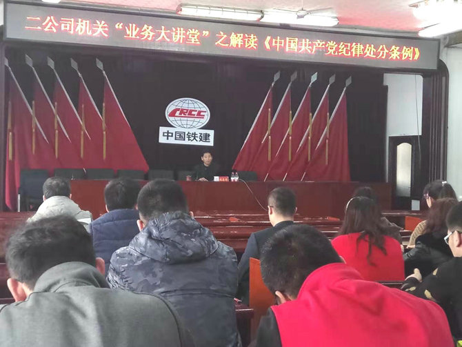 “山西省某縣縣委書記探頭對準舉報箱,干擾巡視被嚴處。該行為影響了干部群眾依法行使檢舉權,干擾了巡視工作的正常開展,嚴重違反了黨的政治紀律和政治規(guī)矩,受到了嚴肅處理……”3月15日下午,在中鐵二十三局集團二公司機關“業(yè)務大講堂”上,公司紀委書記林存庫用全國和身邊的實際案例生動地解讀了《中國共產黨紀律處分條例》,使機關黨員干部進一步樹立了規(guī)矩意識,明確了底線、紅線、高壓線。
