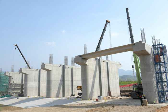閣底樞紐泄洪閘需要架93片空心板梁,將以每日架10片的速度向前推進,在不受天氣影響的情況下,預計9天內(nèi)架完。目前該樞紐與另外3座樞紐一樣,正在挖運一期圍堰泥沙石、黃土等,填筑發(fā)電站高圍堰,抵御汛期巨大洪峰襲擊。