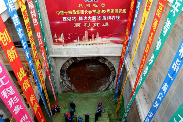 中國(guó)鐵路工程建設(shè)網(wǎng)訊(通訊員 王福生)3月20日上午8點(diǎn)58分,“春城二號(hào)”盾構(gòu)機(jī)在員工的歡呼聲和隆隆的鞭炮聲中破土而出,由中鐵十四局集團(tuán)承建的長(zhǎng)春地鐵2號(hào)線(xiàn)西延線(xiàn)西湖站~捷達(dá)大路站區(qū)間盾構(gòu)全線(xiàn)安全順利貫通。