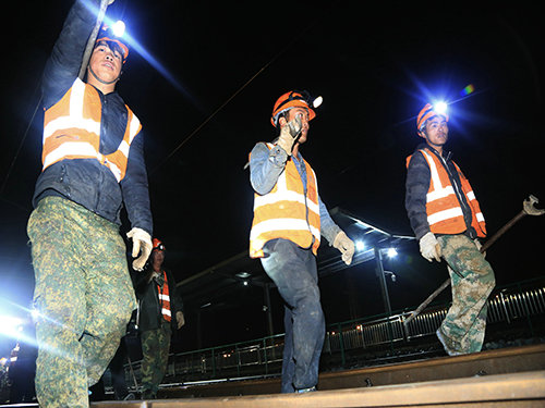 (李艷春 譚帥)3月24日晚23時38分,隨著一聲沉悶的鋼軌落地聲響起,至此,中鐵一局新運涪秀二線項目部首次500米長軌的途卸施工任務(wù)圓滿結(jié)束。同時也標(biāo)志著項目部所承擔(dān)的渝懷鐵路站改工程同步進(jìn)入全面換軌的攻堅大干階段。