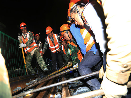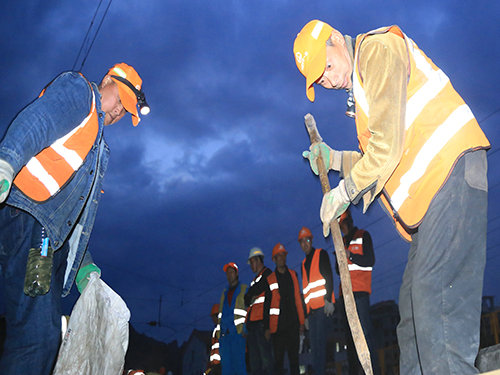 針對卸軌作業(yè)區(qū)段坡度大,牽涉作業(yè)工種人員復(fù)雜,通訊設(shè)備山區(qū)無信號等系列問題,項目部超前籌備,率先深入一線進(jìn)行走訪調(diào)查,同時將施工過程中的重點區(qū)段逐一拍攝圖像,并發(fā)送至交流群中進(jìn)行討論研判;在技術(shù)交底會上,全員對施工作業(yè)中存在的重難點問題進(jìn)行反復(fù)推敲討論,隨后根據(jù)討論結(jié)果形成方案并進(jìn)行全面交底,想方設(shè)法調(diào)足人員和機(jī)具設(shè)備。施工期間,項目班子成員與技術(shù)人員現(xiàn)場全程盯控,并利用通訊設(shè)備隨時與乘務(wù)員保持聯(lián)控,嚴(yán)格控制卸軌里程,最大限度減少軌條相錯量,確保卸軌地點的準(zhǔn)確性。