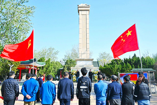 在革命烈士紀念館,破舊的衣衫、斑駁的武器等100余件實物展品,記載了先烈們?yōu)槿嗣窀锩聵I(yè)前赴后繼、英勇戰(zhàn)斗,鞠躬盡瘁、死而后已的事跡。講解員動情講述馬警吾等7位濟陽烈士事跡時,部分員工眼含熱淚:“先烈們犧牲時平均年齡不到25歲,這種青春報國的精神值得我們永遠銘記。”參觀結(jié)束后,員工們手持鮮花,依次走向烈士墓區(qū),將手中的鮮花輕輕放在墓碑前,向烈士們獻上最誠摯的敬意,一朵朵鮮花,承載著大家對先烈的追思與感恩。