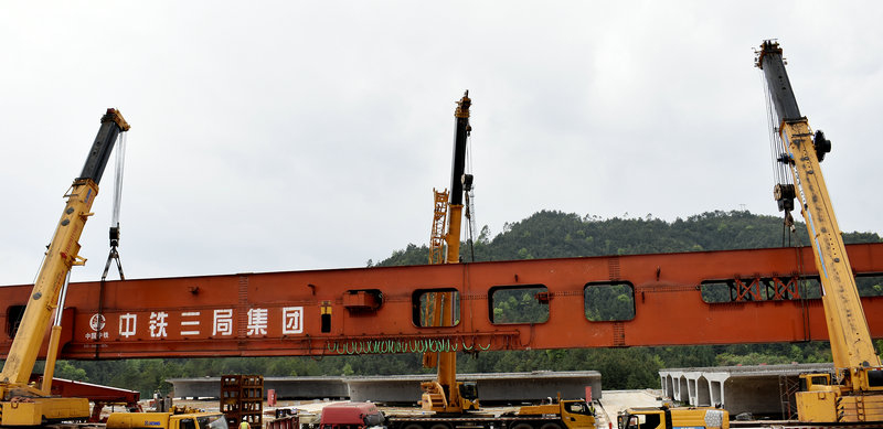 本報贛州訊(通訊員 譚振龍 王植 張鵬舉)3月28日,在中鐵三局線橋公司贛深客專鋪軌基地的上空響起喜慶的鞭炮聲,在項目人員共同努力下,經(jīng)過3臺大噸位吊車歷時3個小時的吊裝,SLJ900運架一體機主梁精準(zhǔn)落位于后車架橫梁上,標(biāo)志著中鐵三局線橋公司贛深客專橋機組裝工作邁出關(guān)鍵性一步。