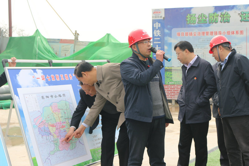 本網河南滎陽3月31日訊(通訊員 劉曉)3月29日上午,滎陽市市委書記宋書杰、人大主任張淑霞、政協(xié)副主席范勝利一行在市交通運輸局黨組書記、局長杜文杰等領導的陪同下,前往滎陽中鐵二十一局三公司G234項目部工地視察。陪同視察的還有鄭州交通建設投資有限公司總經理韓樹國,鐵建中原公司黨委副書記、總經理馬威、監(jiān)理單位以及G234公路改建項目部黨工委書記李凱、常務副經理郭東峰等。另外,鄭州G310兄弟項目技術人員也到現場參觀學習。 上午9時30分,四輛大巴車緩緩駛入萬山隧道出口,30多名來自滎陽市委市政府及人大、政協(xié)領導齊聚在項目標準化建設展示區(qū),參建員工熱烈鼓掌歡迎各位領導檢查工作,宋書記等領導與大家親切握手。市領導詳細了解了施工區(qū)揚塵治理防塵設施標準配備、安全質量管理制度執(zhí)行落實力度和拌合站、鋼構件加工場等區(qū)域建設標準以及施工人員安全、防塵作業(yè)等情況;接著,市交通局長杜文杰為大家講解了滎陽市“一環(huán)七放射五提升”的交通發(fā)展思路。宋書記聽到關鍵處,走到展板前,指著滎陽市公路圖,就國道234項目線路規(guī)劃的重要性和戰(zhàn)略性與在場領導進行了進一步交流、詢問了項目施工進度,并對項目標準化建設給予了高度評價,同時,要求項目按照標準不遺余力的抓好揚塵污染治理工作,攻克萬山、守住青山,建“惠民工程、利民工程”。