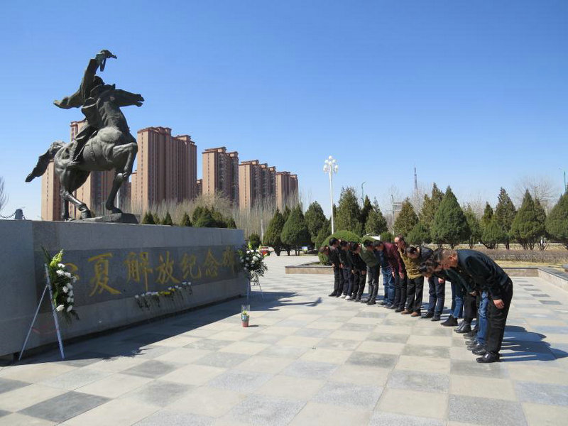 在寧夏解放紀(jì)念碑前,大家一同瞻仰了革命烈士雕像,在了解了革命先烈的英雄事跡后,全體黨員向烈士雕像敬獻(xiàn)了鮮花并默哀三分鐘,表達(dá)對(duì)革命烈士的緬懷和崇高敬意。最后,全體黨員在寧夏解放紀(jì)念牌前再一次重溫了入黨誓詞并在黨員倡議書上許下了自己的承諾。洪亮的聲音環(huán)繞在廣場(chǎng)之上,大家仿佛回到了入黨時(shí)第一次宣讀誓詞的時(shí)候,心情無(wú)比激動(dòng)。