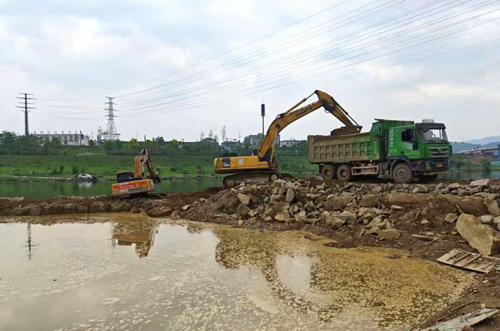晚飯后,突擊隊(duì)員再次直奔現(xiàn)場(chǎng)完成圍堰加厚、加高任務(wù),經(jīng)過近10個(gè)小時(shí)的艱苦奮戰(zhàn),圍堰加高兩米多,暴漲的洪水無(wú)無(wú)法撼動(dòng)圍堰,無(wú)一處潰堤。其次,動(dòng)用多臺(tái)大功率抽水設(shè)備對(duì)圍堰內(nèi)的大量積水外排,為晴天施工創(chuàng)造條件。