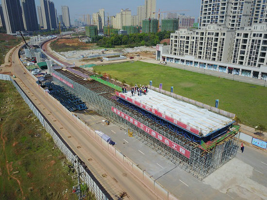 南昌地鐵4號(hào)線首跨現(xiàn)澆箱梁順利澆筑完成