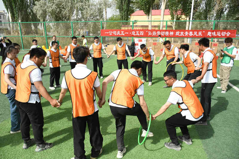 活動(dòng)期間,該公司為阿拉爾片區(qū)項(xiàng)目職工送去節(jié)日慰問,傳遞關(guān)懷與溫暖。群團(tuán)組織開展的“弘揚(yáng)勞動(dòng)精神 綻放青春風(fēng)采”慶“五一”迎“五四”職工趣味拓展活動(dòng)更是精彩紛呈。拔河比賽中,大家齊心協(xié)力、奮勇拼搏;瘋狂毛毛蟲、擊鼓顛球等集體活動(dòng)考驗(yàn)著團(tuán)隊(duì)的默契與協(xié)同配合能力。這些活動(dòng)不僅豐富了職工的文化生活,更極大地增強(qiáng)了職工隊(duì)伍的凝聚力與向心力。