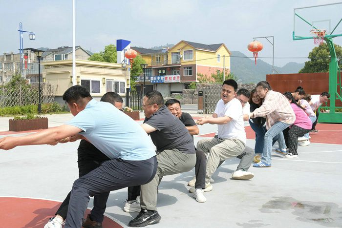 緊接著活動(dòng)的重頭戲——拔河比賽在籃球場(chǎng)舉行。由男員工組成的紅、藍(lán)隊(duì)展開比體力、比技能的一場(chǎng)力拔山兮之戰(zhàn),拉拉隊(duì)員助威聲、吶喊聲、歡笑聲一浪高過一浪。經(jīng)過3個(gè)回合的較量,最終紅隊(duì)奪冠,贏得開心,藍(lán)隊(duì)屈居第二,輸?shù)梅狻?/span>
