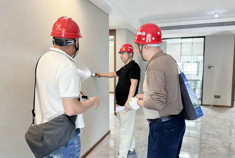 檢查過程中,專家組首先聽取了項目各參建單位關(guān)于分戶驗收工作的專題匯報,詳細(xì)了解了驗收流程、標(biāo)準(zhǔn)執(zhí)行及整改落實情況。隨后,專家組深入施工現(xiàn)場,實地抽查了多個住宅單元的墻體平整度、門窗安裝牢固度、觀感質(zhì)量等關(guān)鍵指標(biāo),并對驗收記錄、實測數(shù)據(jù)等資料進(jìn)行逐項比對。針對發(fā)現(xiàn)的個別吊頂細(xì)微裂縫、門窗磕碰劃痕等問題,專家組現(xiàn)場提出整改意見,確保“一戶一驗”落到實處。經(jīng)綜合評估,專家組認(rèn)為,項目二期工程整體質(zhì)量管控成效顯著,分戶驗收工作程序規(guī)范、資料完整,墻體、門窗等主體結(jié)構(gòu)質(zhì)量符合國家及地方標(biāo)準(zhǔn),觀感質(zhì)量達(dá)到行業(yè)較高水平。同時,專家組對項目團(tuán)隊在驗收過程中展現(xiàn)的嚴(yán)謹(jǐn)態(tài)度和專業(yè)能力給予充分肯定,并強(qiáng)調(diào)要繼續(xù)堅持“以客戶為中心”的服務(wù)理念,將質(zhì)量管控貫穿于工程建設(shè)的全生命周期。