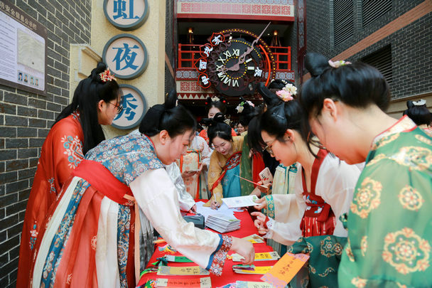 活動以“弘揚中華優(yōu)秀傳統(tǒng)文化”為主線,創(chuàng)新采用沉浸式古風(fēng)體驗形式,將中原文化與現(xiàn)代交友需求深度融合?;顒右潦迹嗄陚兩碇脑O(shè)計的漢服,手持“通關(guān)文牒”,在“筆墨丹青墻”揮毫留名,體驗古代文人雅士的禮儀風(fēng)范。通過“飛花令”隨機組隊環(huán)節(jié),青年們迅速打破陌生感,在才藝展示、趣味紅娘說媒中增進(jìn)了解。一位參與活動的青年員工表示:“這種形式既新穎又富有文化底蘊,讓我們在輕松的氛圍中自然交流,避免了傳統(tǒng)相親的尷尬。”
