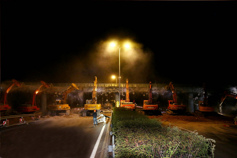 三十余臺破拆設備,十小時施工窗口,京藏高速公路改擴建銀川過境段第JZ14合同段再一次譜寫“京藏速度”。