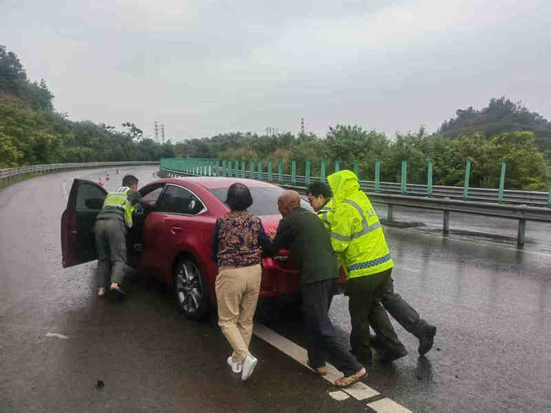 路巡人員協(xié)助將事故車輛轉(zhuǎn)移至路邊安全地帶