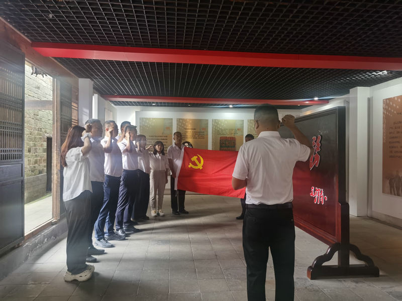 金寨作為革命老區(qū),見證了1947年劉鄧大軍千里躍進大別山的戰(zhàn)略壯舉。在指揮部舊址內(nèi),泛黃的歷史圖片、斑駁的革命文物與詳實的文字資料,全景還原了人民解放軍拉開戰(zhàn)略反攻序幕的壯闊歷程。參建人員跟隨講解員腳步,在槍炮聲模擬場景與戰(zhàn)地復(fù)原陳列中,深切感悟革命先輩“將革命進行到底"的堅定信念”。