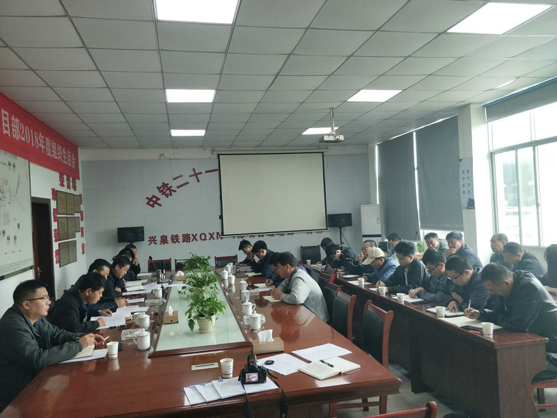 4月11日下午16時,中鐵二十一局四公司興泉鐵路4標項目部召開2018年度基層組織生活會及民主評議黨員會議。四公司副總經(jīng)理楊金衛(wèi),項目領導班子成員、各架子隊隊長、攪拌站全體黨員28人參加了會議。
