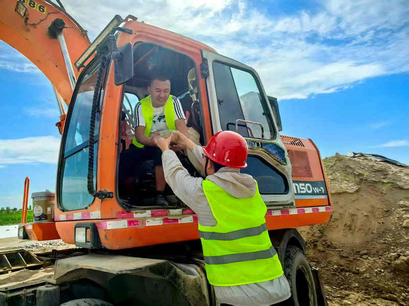 該項目部前往施工現場為各施工隊伍發(fā)放了西瓜、綠豆湯、礦泉水、藿香正氣液等夏季防暑降溫物品,對高溫天氣下辛勞工作的一線工人表達了親切的慰問和衷心的感謝,并提醒工友們在高溫天氣下注意做好防暑降溫措施。拿到防暑物資的工友們紛紛表示:“項目部送的清涼用品,看著貼心,用著暖心!這份關懷極大鼓舞了我們,讓大家心里暖暖的,也給了我們戰(zhàn)勝高溫酷暑的信心,再熱的天干活也更有勁兒!”
