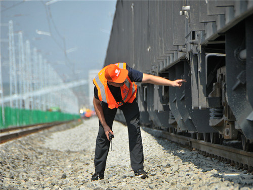 烈日當空,鋼軌間蒸騰起一片灼人的熱浪。內(nèi)蒙古地區(qū)近日地表溫度逐步攀升,鋼軌上蒸騰的熱氣扭曲了空氣,眼前景物似在水中晃動。