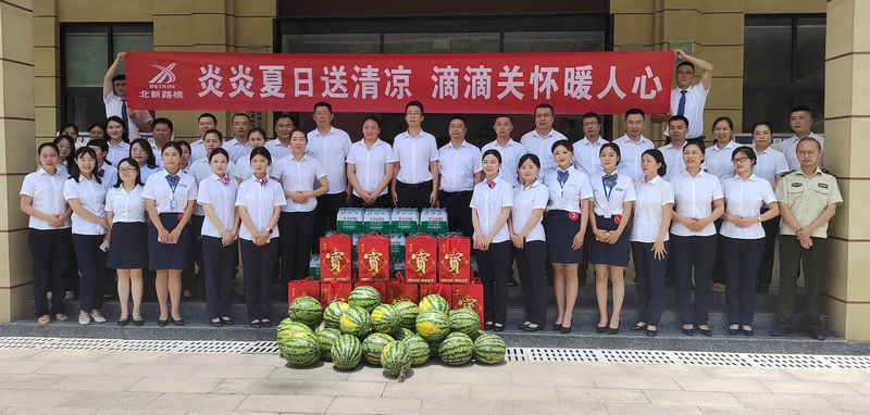 慰問現(xiàn)場,公司高管與大家親切交談。仔細察看員工的工作狀態(tài),詳細詢問高溫天氣下的工作強度、輪班作息安排,以及防暑降溫措施的落實情況。“大家頂著烈日守護道路暢通,辛苦了!” 公司全體慰問人員對一線員工不畏酷暑、堅守崗位的敬業(yè)精神給予高度肯定,對他們?yōu)楸U系缆钒踩行蜻\行所付出的努力表示衷心感謝。隨后,他們將精心準(zhǔn)備的藿香正氣水、清涼油、礦泉水、西瓜等防暑慰問品一一送到員工手中,叮囑大家在高溫環(huán)境下工作要注意勞逸結(jié)合,做好自我防護。?