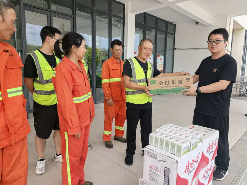 活動現(xiàn)場,公司管理人員與養(yǎng)護(hù)單位管理人員、一線養(yǎng)護(hù)工人親切交流,詳細(xì)詢問工作、生活情況,對他們不懼高溫、堅守崗位的奉獻(xiàn)精神表示感謝,并反復(fù)叮囑大家要增強自我保護(hù)意識,科學(xué)防暑降溫,確保工作安全。并結(jié)合高溫作業(yè)實際,精心準(zhǔn)備了藿香正氣水、礦泉水、金銀花露和清甜西瓜等防暑降溫物品,確保養(yǎng)護(hù)工人及時補充水分、緩解暑熱。同時,叮囑養(yǎng)護(hù)單位現(xiàn)場管理人員在高溫天氣提供綠豆湯,清香沁人,嚴(yán)格落實高溫作業(yè)安全措施確保員工身體健康與生產(chǎn)安全“兩不誤”。
