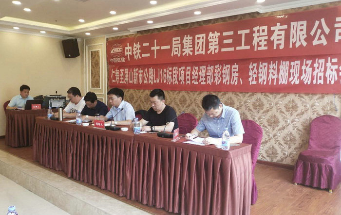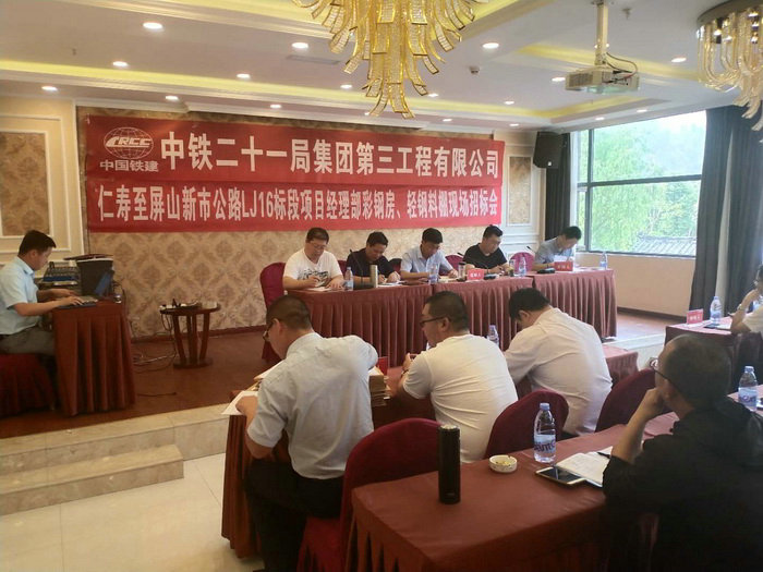 本網(wǎng)四川宜賓4月22日訊(記者 尹登明 通訊員 陳濤)剛剛上場的中鐵二十一局三公司仁沐新高速公路LJ16標(biāo)項(xiàng)目部,緊鑼密鼓地展開了各項(xiàng)工前準(zhǔn)備工作,為早日落成項(xiàng)目部辦公生活場所,在項(xiàng)目部臨時駐地屏山縣中都鎮(zhèn)召開了彩鋼房及輕鋼料棚招標(biāo)會議。