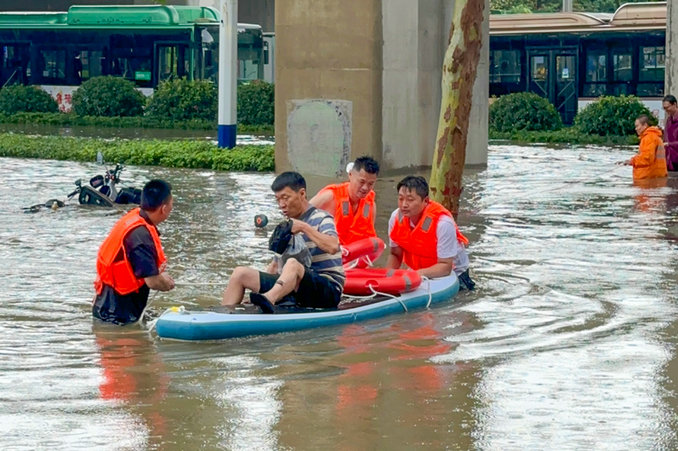 8月7日,鄭州遭遇強降雨天氣,城市部分街道短時間內(nèi)積水深達半米。面對突發(fā)險情,中鐵?泰和里街區(qū)迅速啟動應急預案,全體工作人員緊急投入搶險救援工作,在齊腰深的積水中筑壩排險、轉(zhuǎn)移群眾,成功在暴雨核心區(qū)域為市民和商戶開辟出一方安全島。