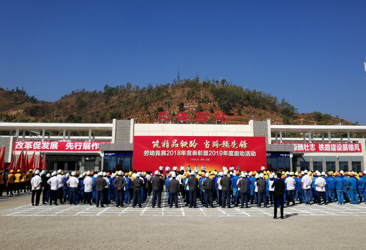 4月19日,云南省人民政府、云南省總工會在云南永廣鐵路元謀西站舉行“筑精品鐵路 當跨越先鋒”勞動競賽2018年度表彰暨2019年度啟動儀式。中鐵二十一局集團公司副總經(jīng)理趙春鋒,玉磨鐵路項目部經(jīng)理柴穎鵬代表20家獲獎單位參加相關(guān)活動。