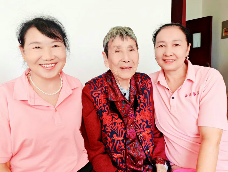 圖1為:新入住奇臺110社區(qū)吾家樂寶養(yǎng)老院的“老寶貝”孫相云奶奶(左二),與工作經(jīng)驗豐富的高級護理員張遠英(左一)和哈薩克族護理員古勒尼婭(左三),親密合影留念。
