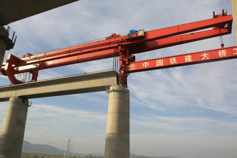 新建巢馬城際鐵路先行段箱梁預(yù)制、梁架設(shè)共計(jì)56孔,全部由中鐵建大橋局商合杭鐵路站前十四標(biāo)二分部含山制梁場(chǎng)負(fù)責(zé)施工,歷時(shí)36天,最終成功完成全部箱梁架設(shè)。