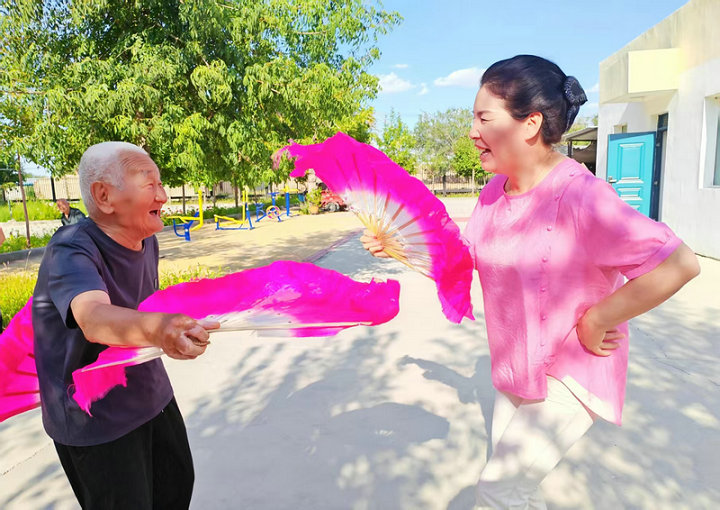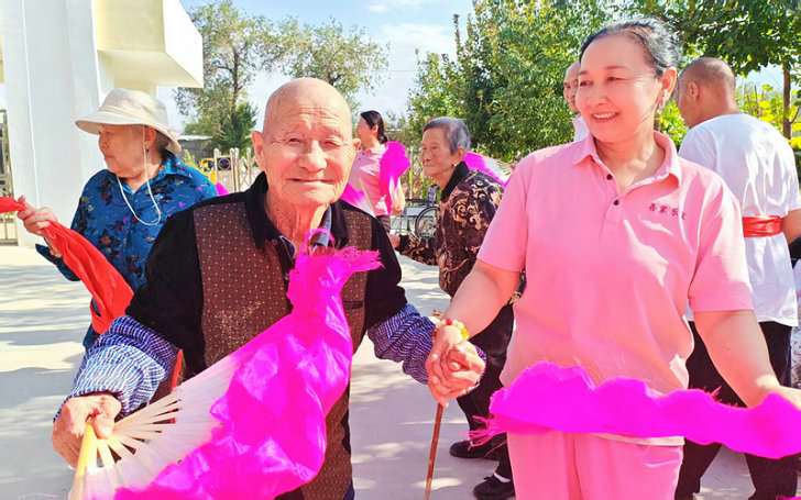 奇臺訊(通訊員:王學(xué)明 報道)8月25日下午,六師奇臺110社區(qū)吾家樂寶養(yǎng)老院內(nèi),秋高氣爽,陽光明媚。在院的爺爺、奶奶們,與員工們扭起大秧歌,揮舞紅綢扇,興高采烈,歡歌笑語,用輕盈矯健的舞步告訴在場的人們“我們不老,還很年輕”。