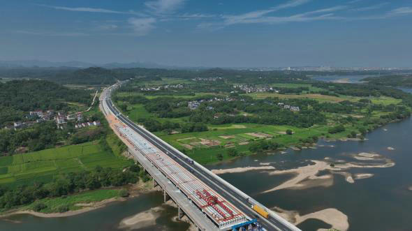 中鐵十五局常山江航電樞紐招賢二期泄洪閘正式架梁