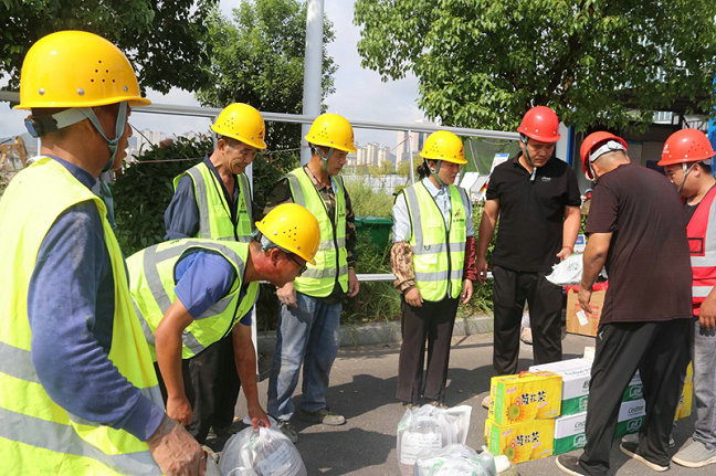 在物資保障方面,建立“防暑物資清單化管理”機制,采購清涼油、風油精、藿香正氣水等應急藥品,向一線班組發(fā)放金銀花露、礦泉水、綠豆等解暑食品。確保“清涼物資”直達作業(yè)面、覆蓋每一位職工,切實將組織關(guān)懷轉(zhuǎn)化為抵御酷暑的“保障”。而在機制創(chuàng)新層面,武夷新區(qū)金融/商務(wù)CBD市政項目推行彈性工作制,通過調(diào)整作業(yè)時序避開正午高溫時段。項目現(xiàn)場裝有智能溫控監(jiān)測系統(tǒng),當現(xiàn)場氣溫超過35℃時管理人員立即組織輪崗休息,實現(xiàn)“人機協(xié)同”科學防暑,有效破解“保進度”與“護健康”的矛盾,施工效率有效提升,中暑事件實現(xiàn)“零發(fā)生”。